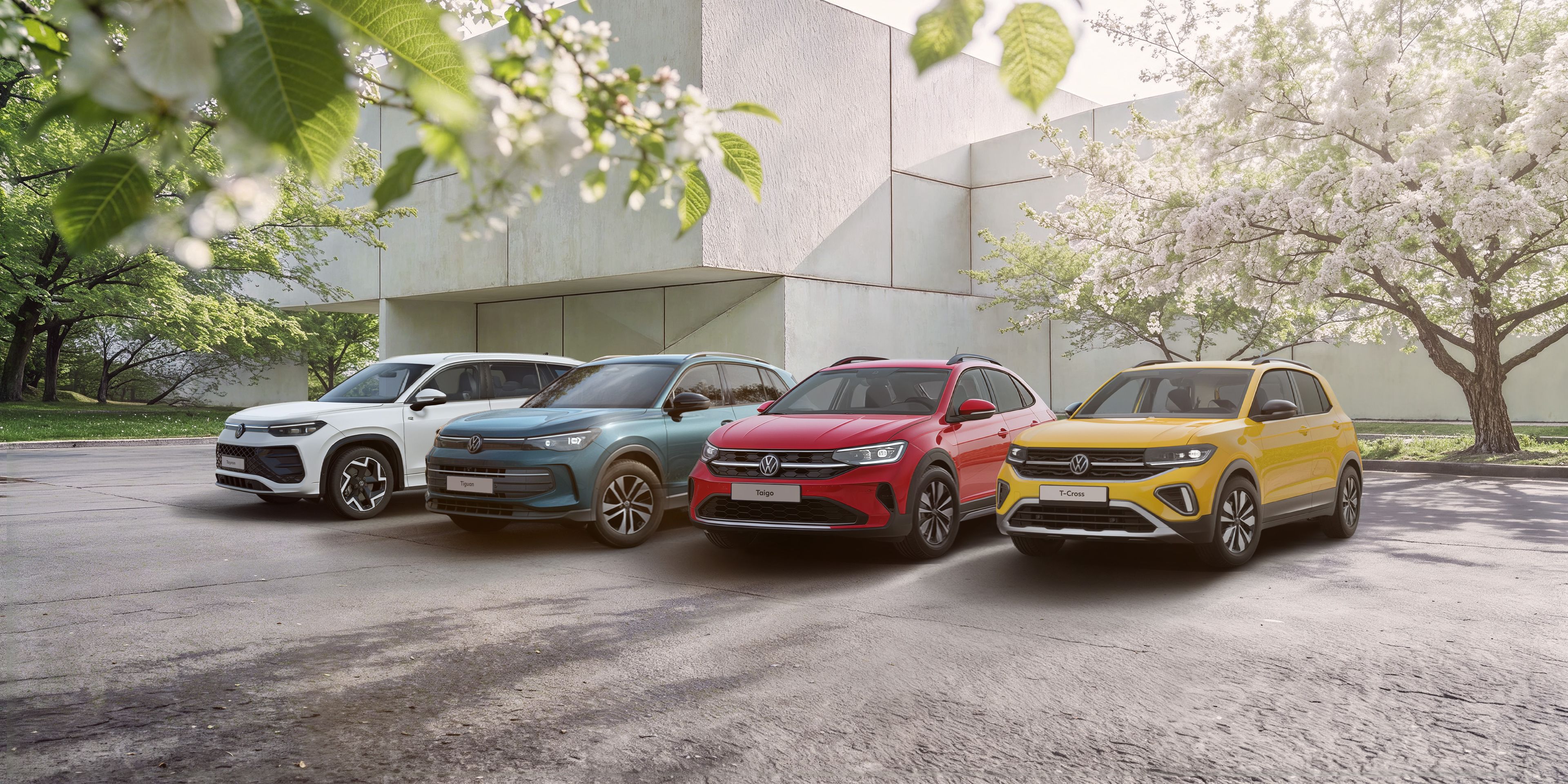 Vyberte si z ponuky našich atraktívnych SUV modelov Tayron, Tiguan, T‑Cross alebo Taigo s financovaním 50:50 a s úrokom len 1,99 %.