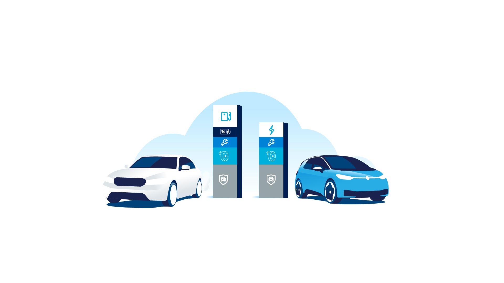 Porovnanie prevádzkových nákladov pri vozidle so spaľovacím motorom* a elektromobilom (zhora nadol): spotreba, daň z vozidla**, náklady na údržbu, náklady na opotrebenie a poistenie¹⁾
