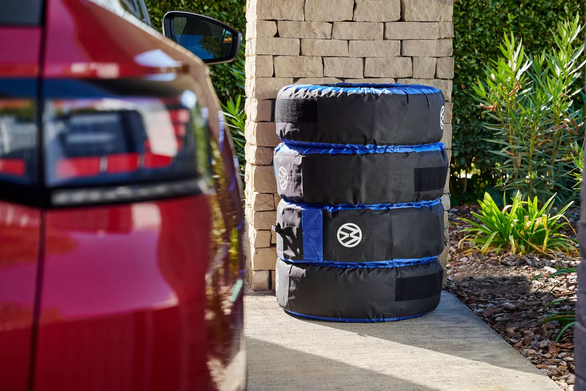 Štvordielna sada obalov na pneumatiky umožňuje šetrnú prepravu a skladovanie kolies v garáži alebo pivnici bez straty hodnoty. Na vonkajšej strane sa nachádzajú samostatné vrecká na uloženie skrutiek kolies. Označenie na taške umožňuje jednoduché priradenie kolies. Informácie o produkte získate u svojho partnera Volkswagen.