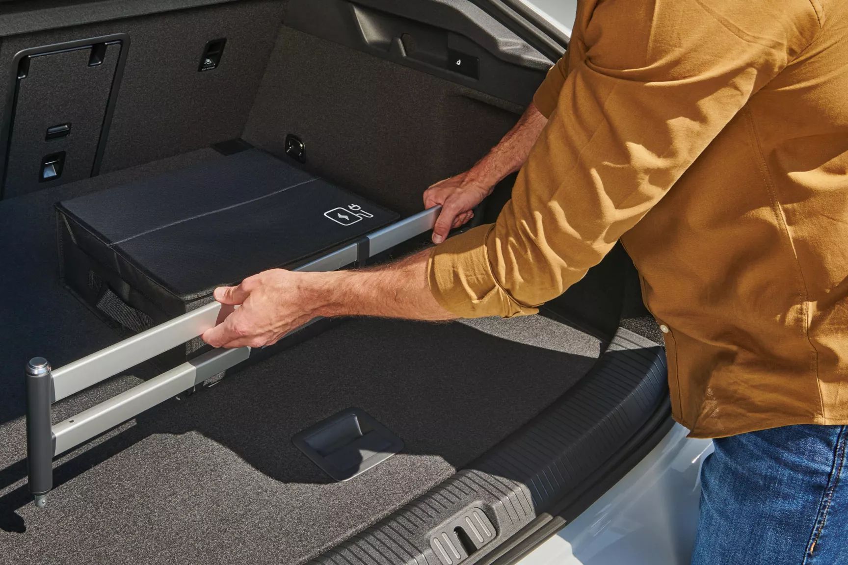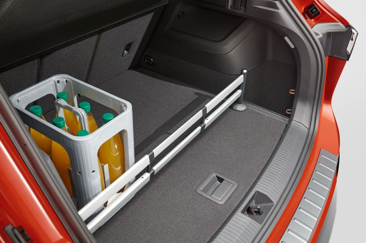 S týmto oddeľovačom do batožinového priestoru môžete flexibilne rozdeliť batožinový priestor svojho vozidla, aby sa napríklad batožina alebo iný náklad neposúval. Oddeľovač je možné voľne umiestniť pozdĺž vonkajších okrajov podlahy batožinového priestoru pomocou upínacích svoriek a teleskopická tyč zaisťuje jej stabilitu. Oddeľovač do batožinového priestoru si môžete vyžiadať u svojho partnera Volkswagen.