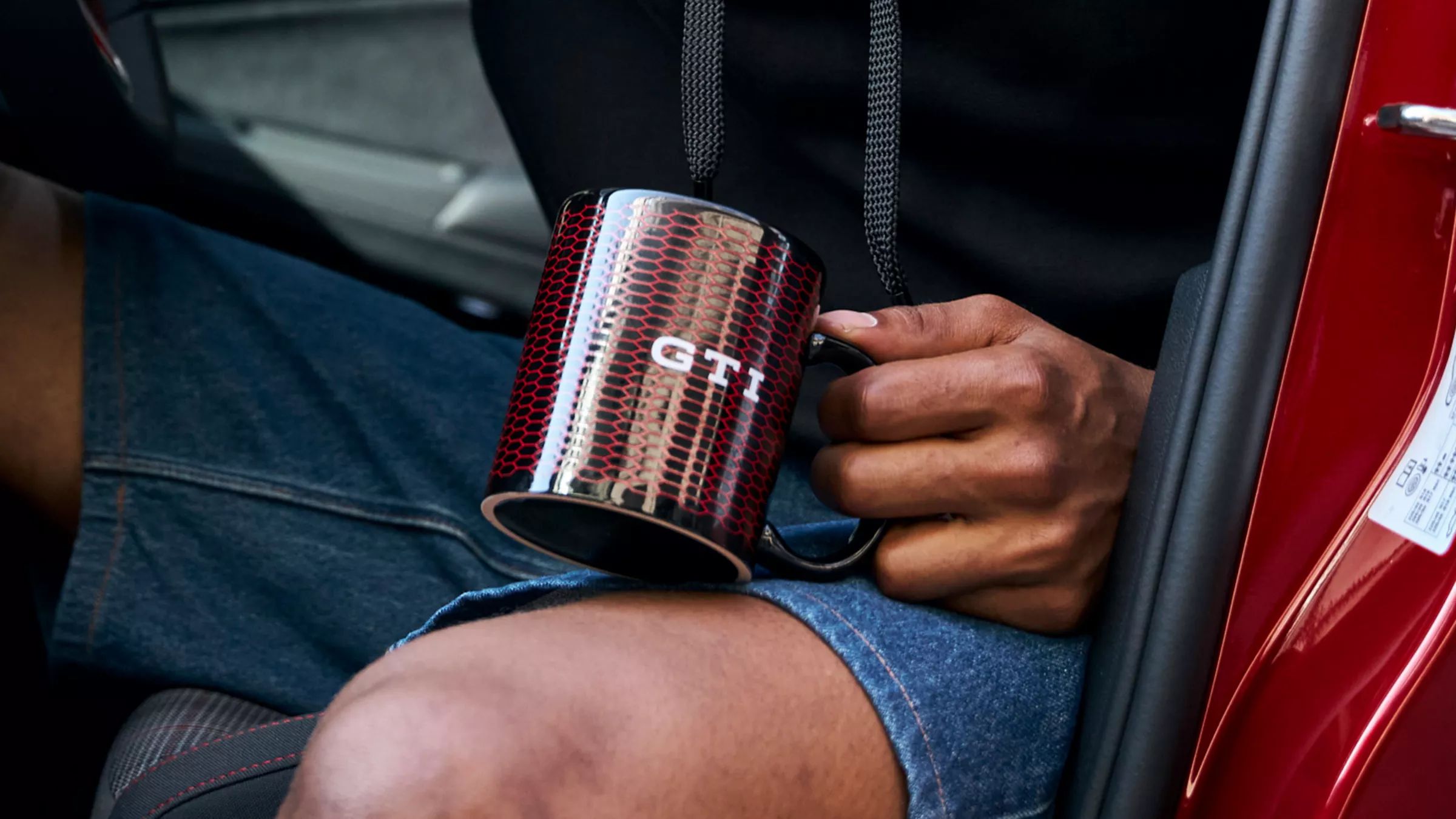 Vychutnajte si svoj obľúbený horúci nápoj z tohto štýlového čierneho hrnčeka s dizajnom GTI a bielym logom „GTI“. Je vyrobený z keramiky a pojme až 300 ml tekutiny. Požadovaný produkt si môžete vyžiadať u svojho partnera Volkswagen.