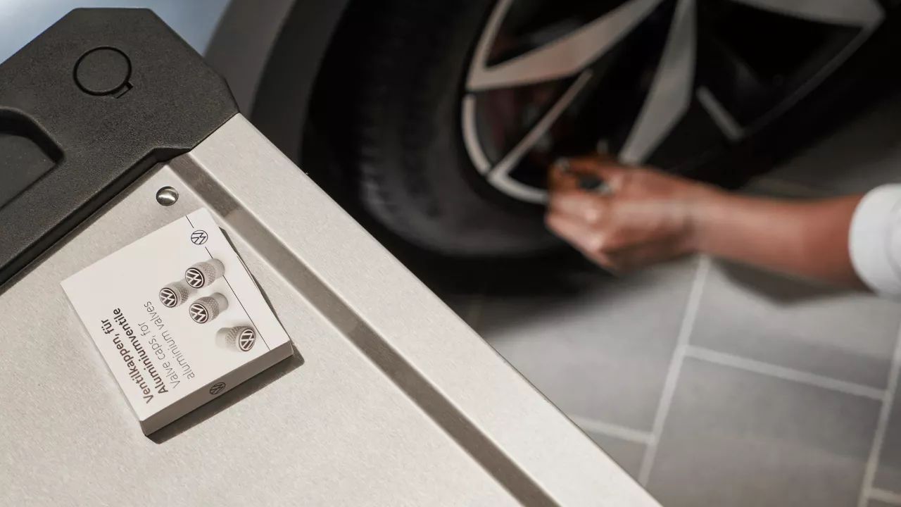 Krytky ventilov v novom dizajne Volkswagen pre gumové a mosadzné ventily chránia ventily pred prachom, nečistotami a vlhkosťou. Sada obsahuje štyri krytky vysokej kvality. Krytky ventilov si môžete objednať u svojho partnera Volkswagen.