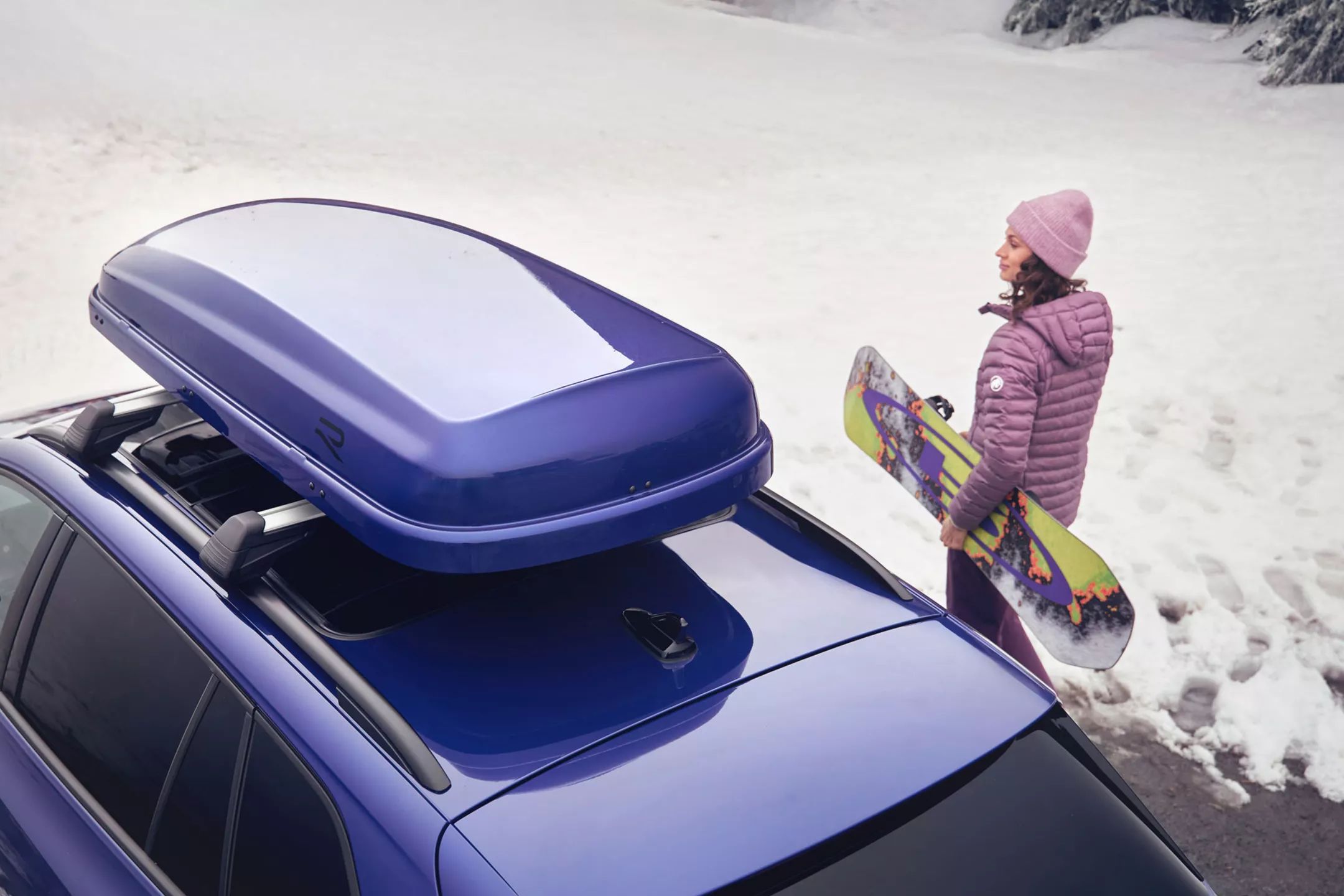 Hľadáte spôsob, ako získať ešte viac úložného priestoru vo vašom vozidle Volkswagen? Čo tak exkluzívny strešný box „Comfort“ v Lapiz Blue – nielenže ponúka veľa priestoru, ale zároveň dodáva streche vášho vozidla športový vzhľad.