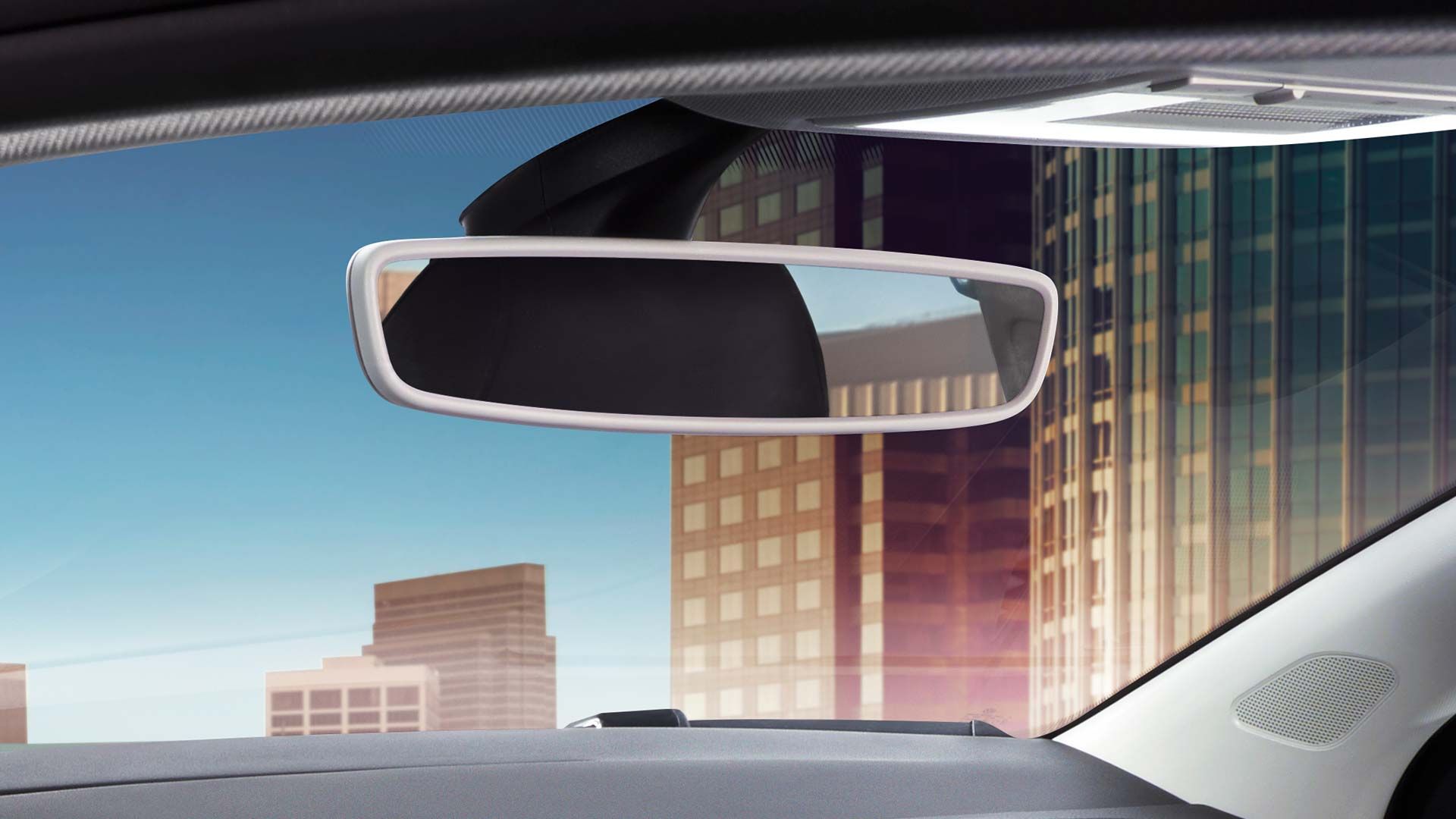 Vnútorné spätné zrkadlo s automatickou clonou prispieva k vyššiemu komfortu a bezpečnosti počas jazdy v noci, pretože zabraňuje oslňovaniu svetlometmi vozidla jazdiaceho za Vami. Skladá sa z zrkadlového prvku a elektroniky s dvomi fotosenzormi. Pomocou fotosenzorov rozpozná elektronika ožarovanie spredu a zozadu. Ak je ožarovanie zozadu silnejšie ako ožarovanie spredu, dôjde k odpovedajúcemu zacloneniu zrkadla. Plocha zrkadla je pokrytá vrstvou elektrolytov, podobne ako LCD displej mobilného telefónu. Elektrolyty sa skladajú z kryštálov rovnakého tvaru. Zavedené napätie natočí kryštály pod určitým uhlom. Tento uhol určuje množstvo odrazeného svetla. Sila napätia určuje stupeň stmavenia. Efekt stmavenia a rozjasnenia prebieha plynule a takmer bez oneskorenia. Keďže vodič zrkadlo nemusí ovládať manuálne, môže sa plne koncentrovať na riadenie vozidla. Táto funkcia zvyšuje bezpečnosť cestujúcich.